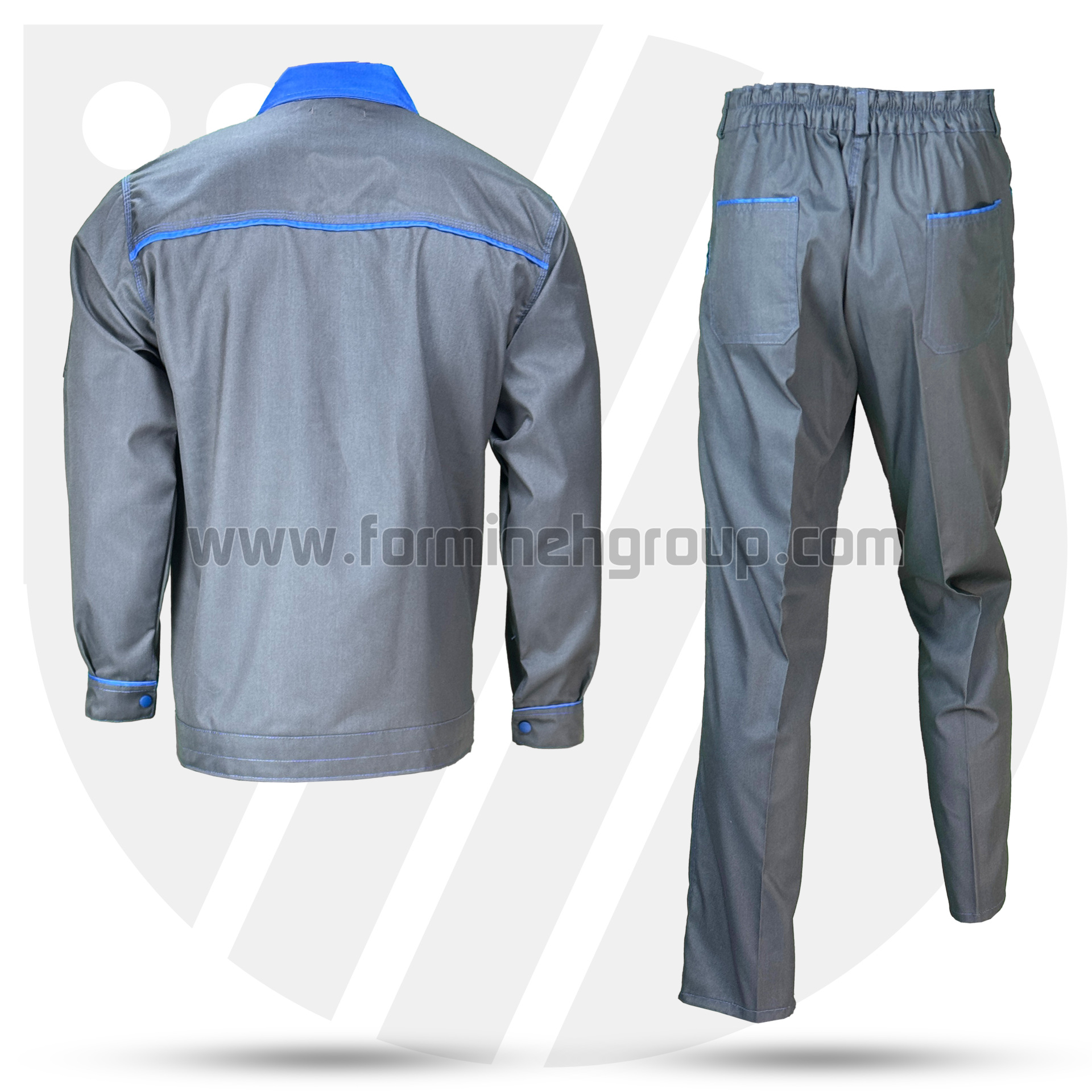 لباسکار دو تکه ویژن (طوسی/ آبی)، تولید شده با پارچه کجراه ویسکوز/ فلامنت با دوام بالا و دوخت تمام صنعتی است.